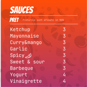 Chifla cu susan si in, sos picant, ceapa rosie, salata, castraveti murati,carne vita, cartofi prajiti M/L, doza suc la alegere 330ml